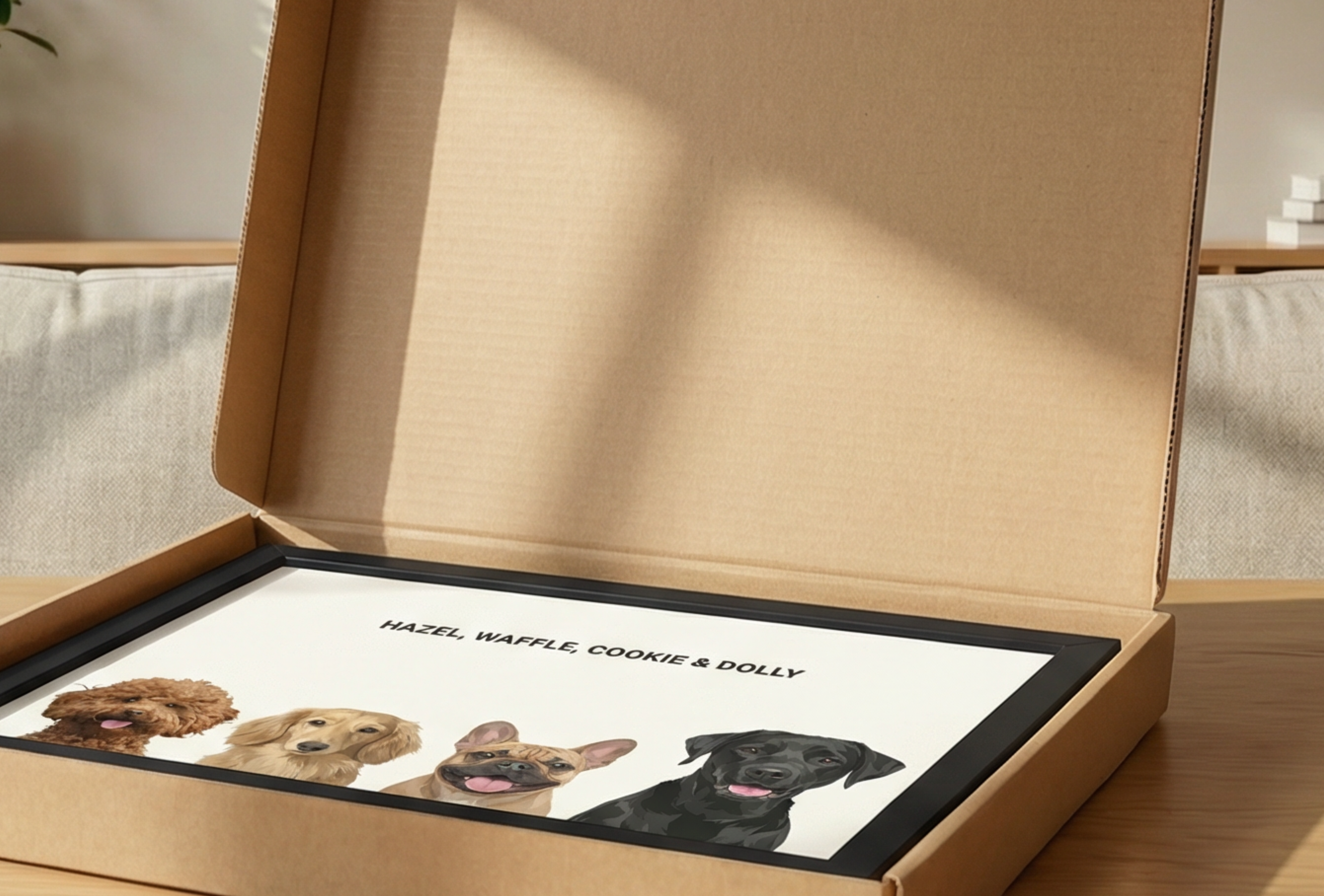 We believe meaningful pieces should be thoughtfully made. Every portrait is hand-designed by real artists, printed on premium 200 g/m² paper, framed in Ayous wood and carefully crafted to capture what makes your pet truly unique.